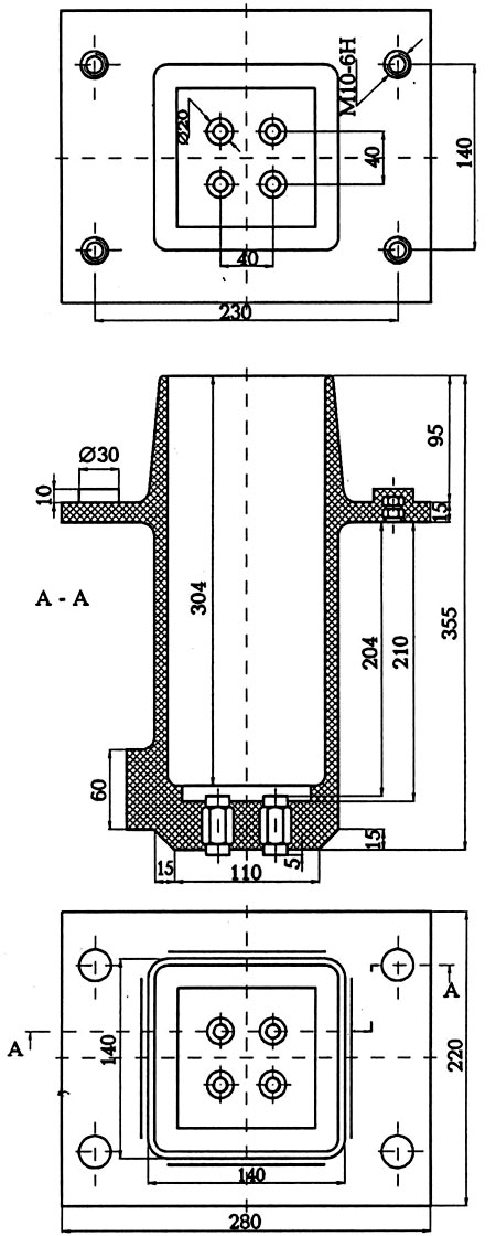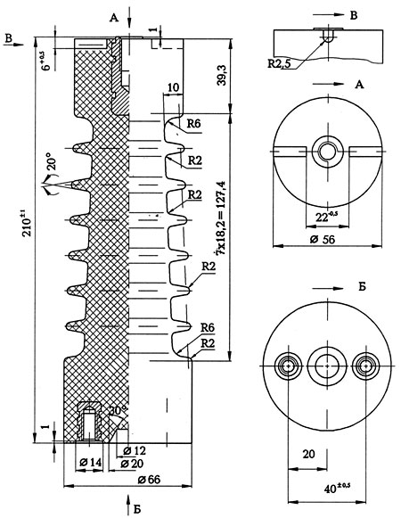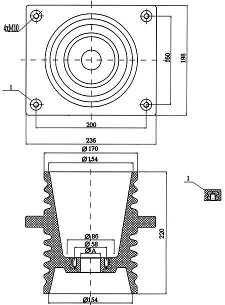 изолатори 10 и 20 кV с разположение на вложките по желание на клиента;